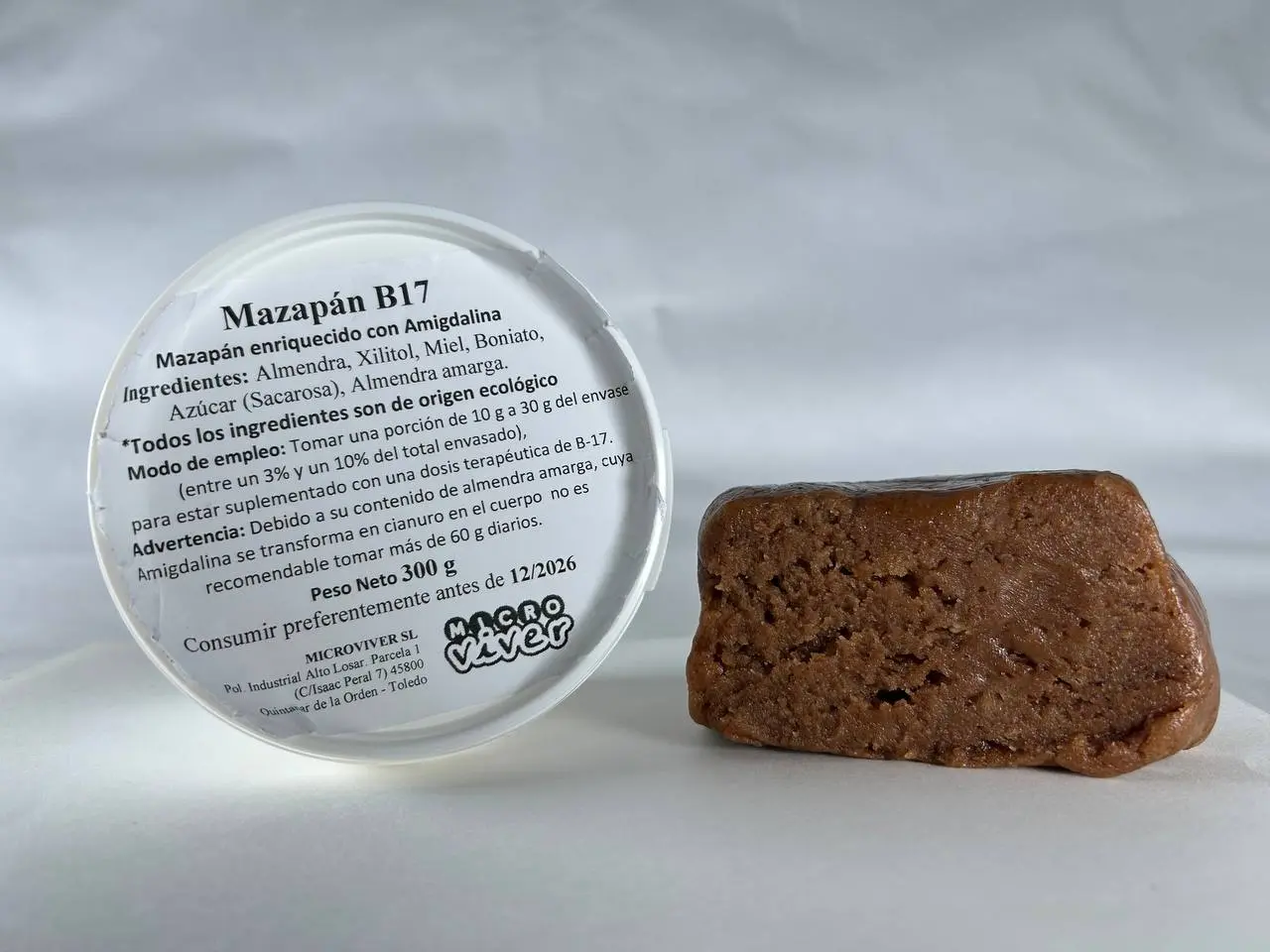 Presentamos en exclusiva para la cesta de navidad de Microviver este delicioso mazapán enriquecido con almendra amarga que contiene una dosis moderada de Amigdalina, también llamada vitamina B17.